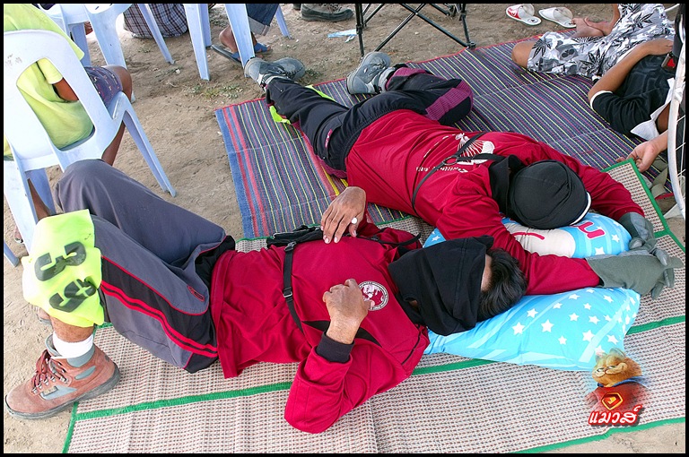 พี่โบ้ หลังจากแข่งขันแล้ว ก็หิ้วเครื่องเดินคอตกเข้าเต็นท์........