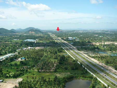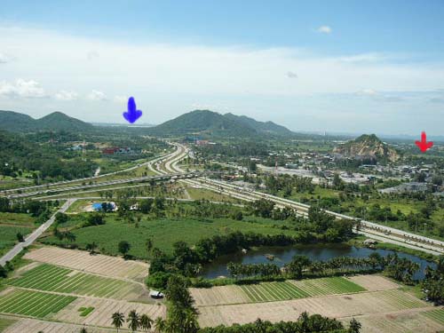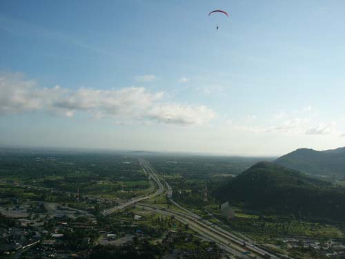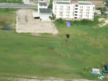 มองจากบ้านบึงไป สนามบางแสนจะอยู่หน้าภูเขา(ลูกศรแดง) ขากลับบินทวนลม ตอนบินร่มก็จะมียกขึ้นโดยไม่ต้องเร่งเครื่อง บางช่วงก็ลงเรื่อยๆจนต้องเร่งเครื่องสุดๆเลย การแกว่งก็มีบ้างเล็กน้อย