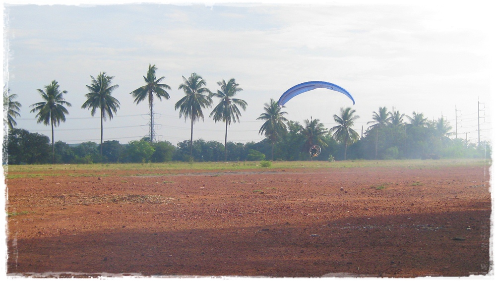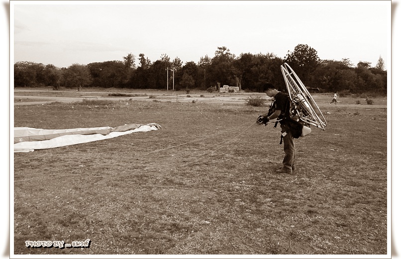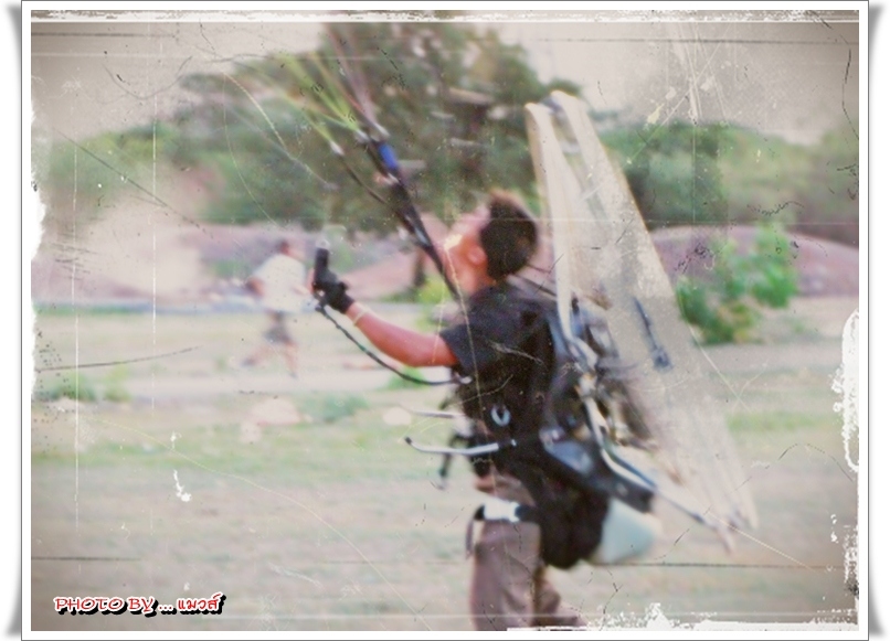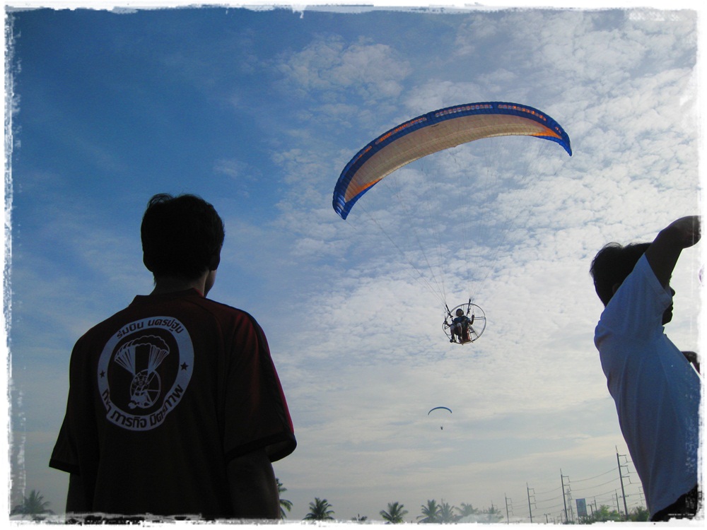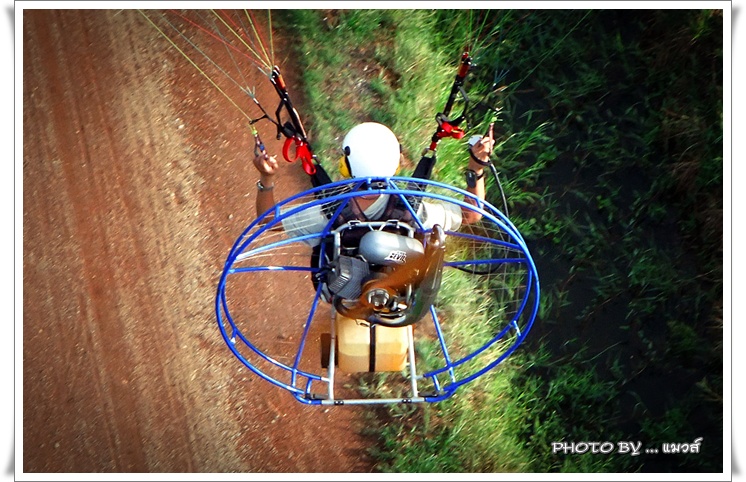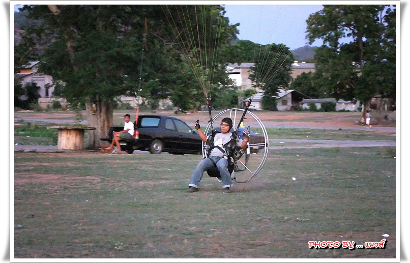 พอยกตัวข้ามสายไฟ ก่อนถึงสนามนิดเดียวเอง เห็นพี่ทัยควบร่มตัวใหม่เอี่ยมใกล้เข้ามาบภาพมาซะหน่อย