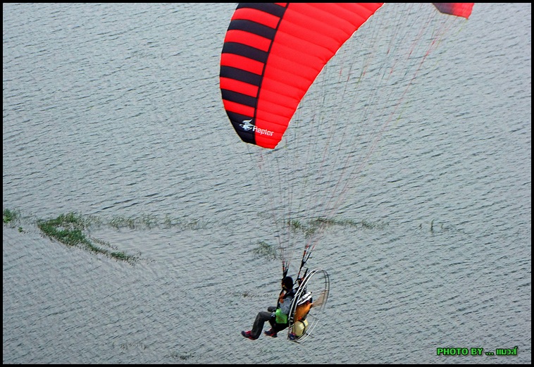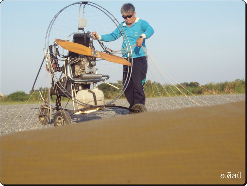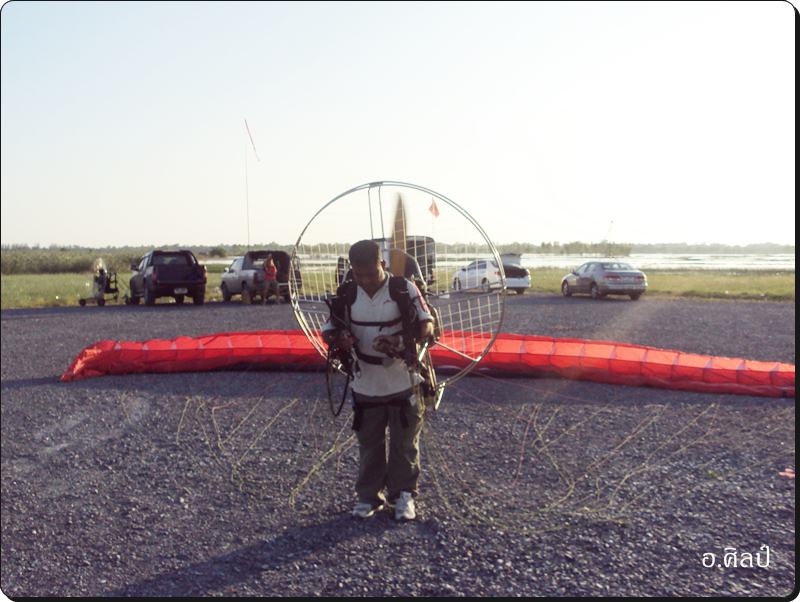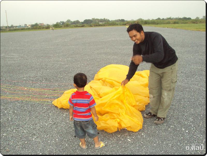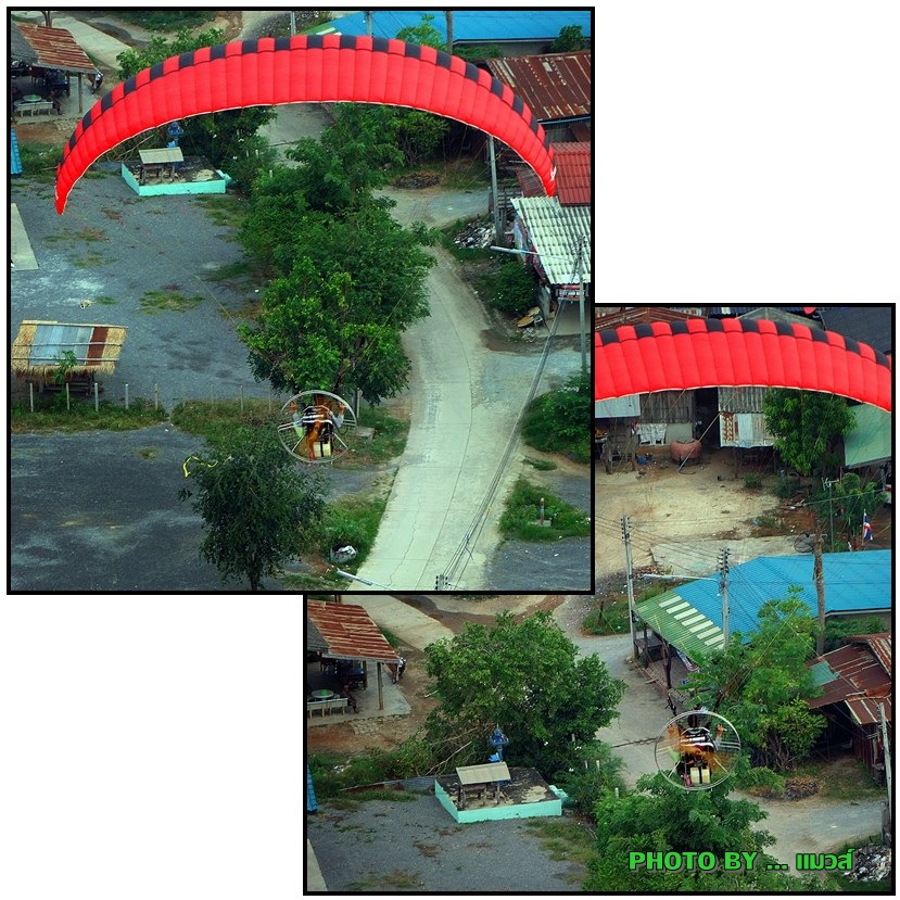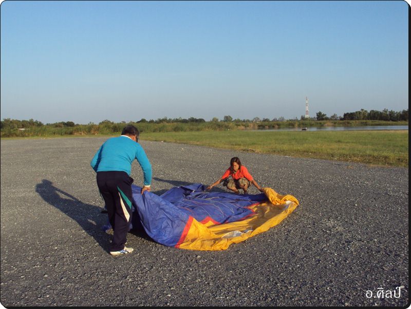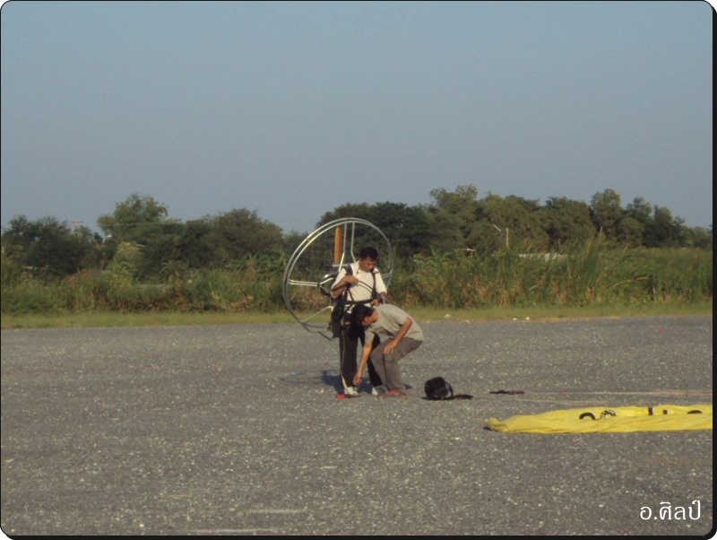 เย็นวันอาทิตย์ 14 พ.ย.53 เป็นการซ้ำไฟท์ของ 2 นักบินใหม่ หลังจาก FF ไปแล้วเมื่อวานนี้ ภาพนี้คือร่มบุญเสริมกำลังจะเทคอ๊อฟ ซึ่ง อ.พงษ์ใช้วิทยุ 2 ชุด ทั้ง 2 ร่มฟังพร้อมกัน ผมมาถึงสนามปรากฎว่าร่มเอกขึ้นไปเรียบร้อยแล้ว