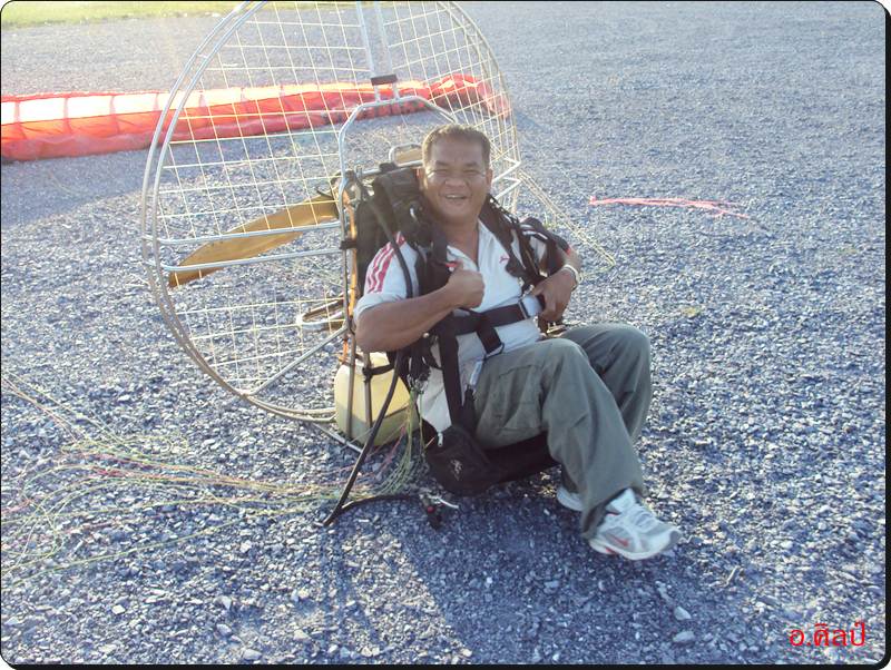 ได้ภาพบุญเสริม (ร่มเหลือง) กับพิชัย 1 ภาพ พอถ่ายเสร็จเสียงใบพัดดังแก๊ก...อะไรอีกหว่า...เลยลงไปตรวจดูปรากฎว่าสปริงท่อขาดไป 1 ตัวใบพัดแหว่งไปเล็กน้อย เลยเก็บร่มไม่ขึ้นดีกว่า