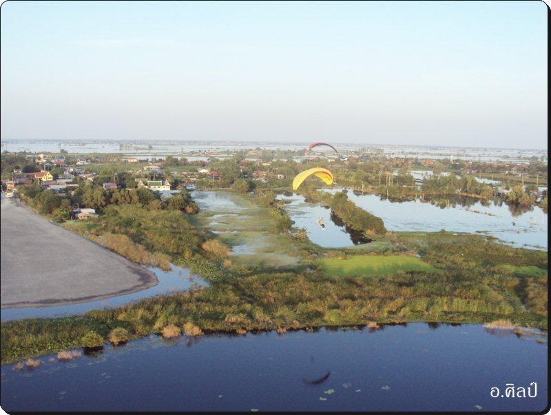 ได้ภาพข้างบนมาไม่กี่ภาพ ดูสภาพสนามธรรมกายล้อมรอบไปด้วยน้ำ สังเกตให้ดีจะเห็นเสาไฟฟ้ามีไว้สำหรับให้นักบินฝึกเตะหลักได้นะครับ 5555