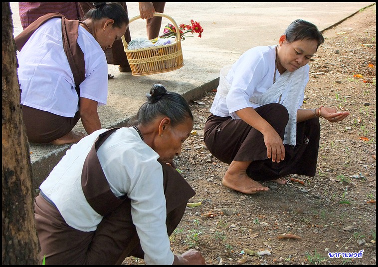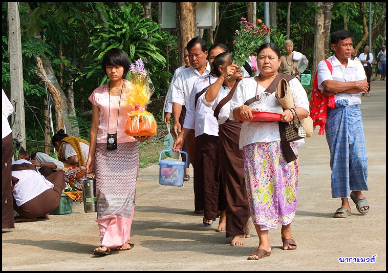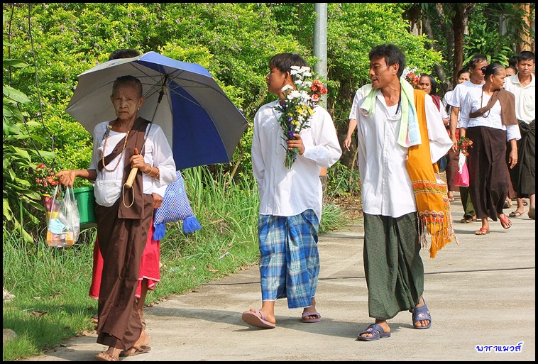 วิถีชาวมอญ เดินมาทำบุญที่วัด ...