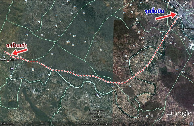 ลืมบอกไป เส้นทางการบิน บินเกาะทางรถไฟ และถนน ไม่บินทางตรง บินอ้อมเขา ใช้ระยะทางประมาณ 30 กว่า กม. ไม่น่าจะเกิน 40 กม.