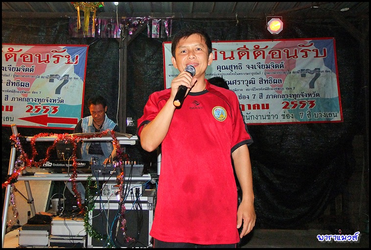พี่ทัย หรือดาบทัย เลขาชมรม กำลังวาดลวดลายให้ชาวบ้านชม ... ธรรมดาแกก็จอมลวดลายอยู่แล้ว ซ้อจับไม่ได้ซักที