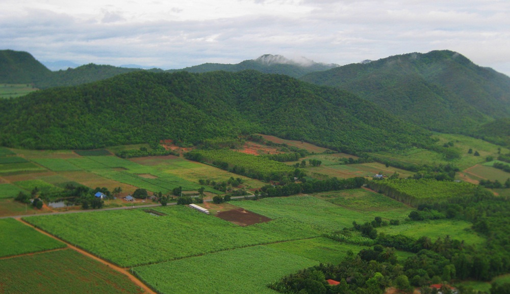 นี่ก็ภูเขาทางขวามือ ยังไม่ถึงงานอีก เห็นร่มข้างหน้าเริ่มจะเข้าช่องระหว่างเขา แล้ว เอาจิงเหรอเนี่ย เอาไปต่อ ลมแรงแต่ยังไม่โยกยังจับกล้องเก็บภาพได้สบายๆ ไม่ได้เอาสายกล้องขึ้นไปด้วยกลัวหลุดมือเหมือนกัน งั้นพักไว้แค่ภาพนี้ก่อนเก็บมาอีกเยอะ ขอทำงานก่อน