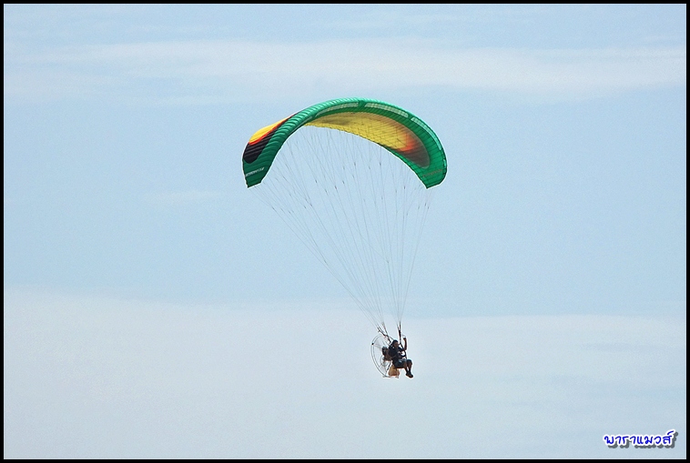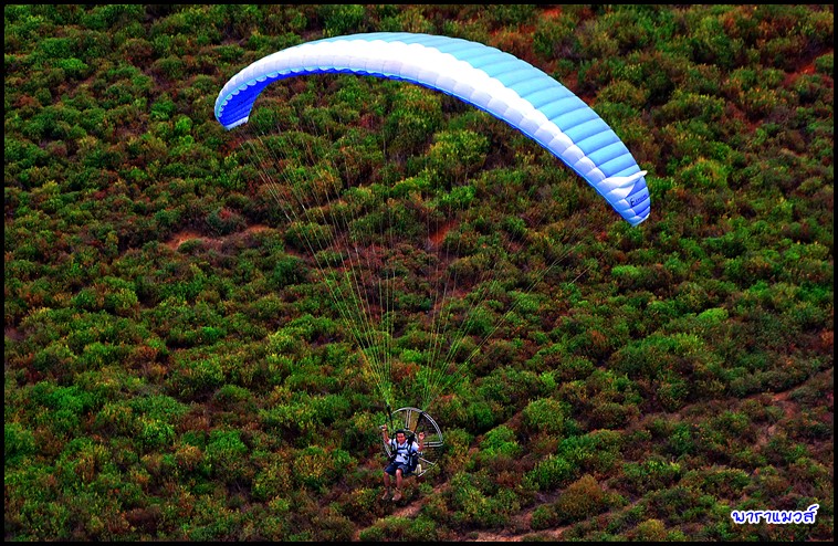 อีกห้าร่ม เตรียมขึ้น มีผม จานพงค์ ชู เอก ต่าย... มองทางขวา ฝั่งแก่งกระจาน เมฆดำเชียว อาจจะไม่โดนฝนก็ได้ .. เอาล่ะ ได้เวลาโลว์พาสยี่สิบกิโลแล้ว เก็บกล้องฝากไว้กับพวก ขอบินตัวเปล่าเพื่อความมันส์ เลยไม่ได้นำภาพมาฝากเพิ่มเติม