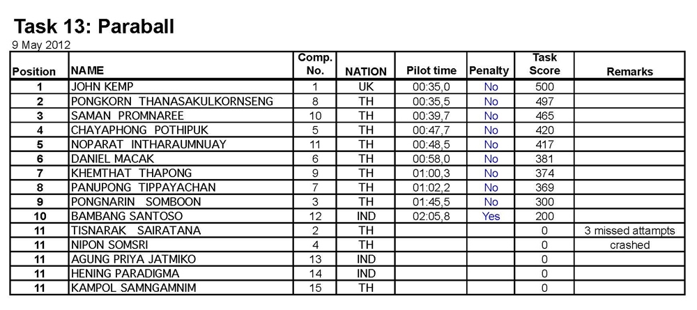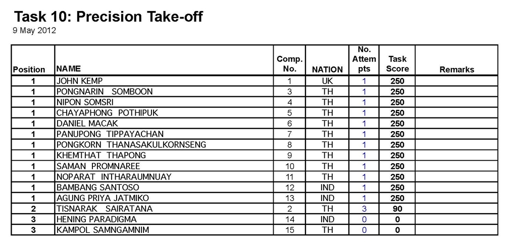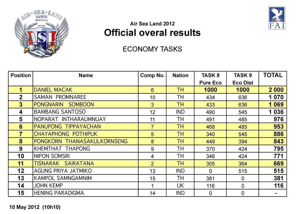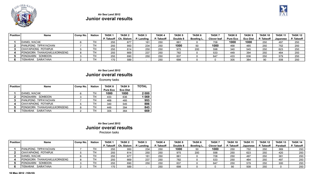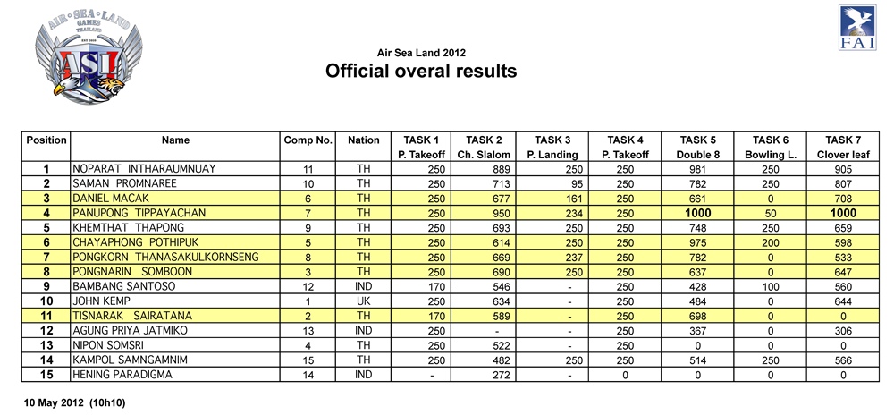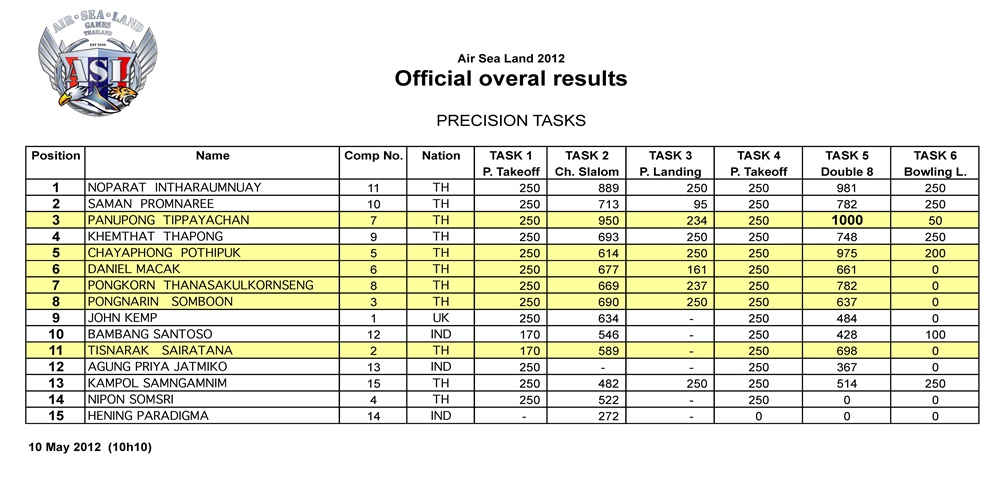 ผลคะแนน แข่งขันรายการ Air Sea Land วันที่ 7 - 10 พ.ค.2555