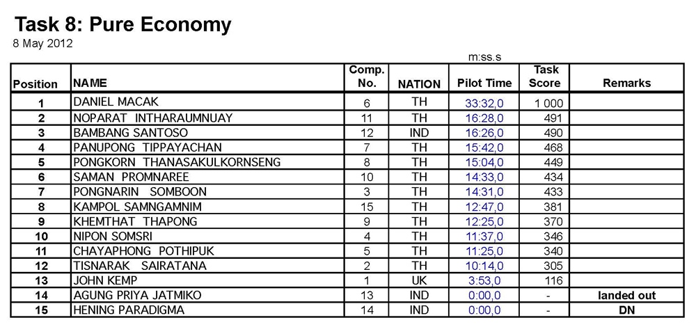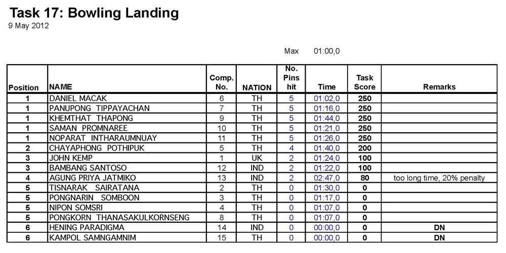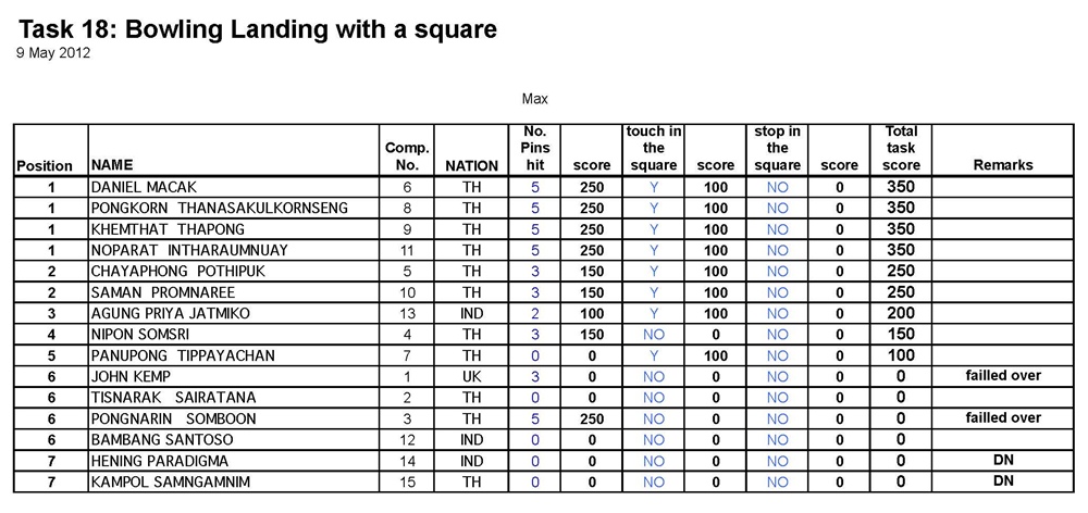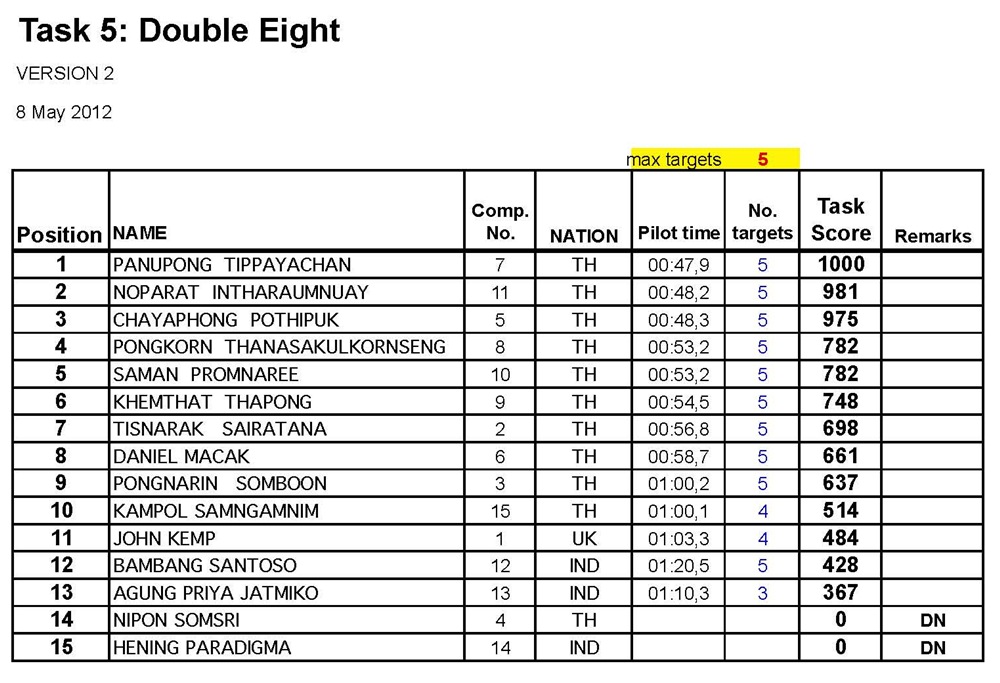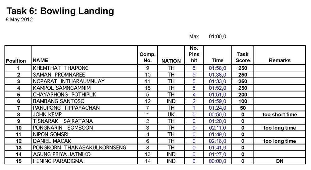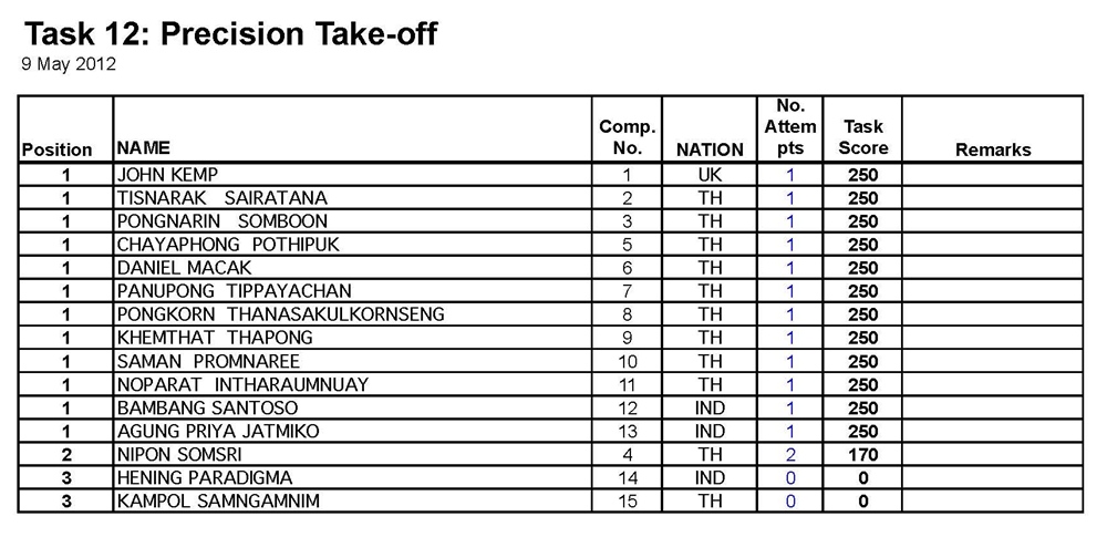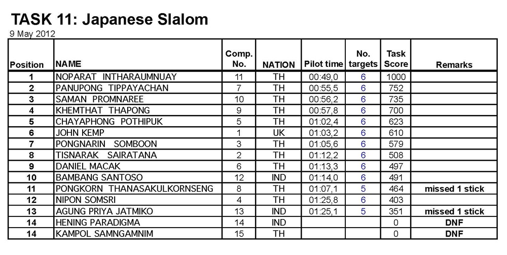 ผลคะแนน แข่งขันรายการ Air Sea Land วันที่ 7 - 10 พ.ค.2555