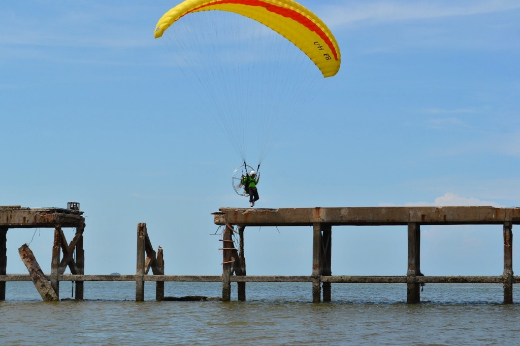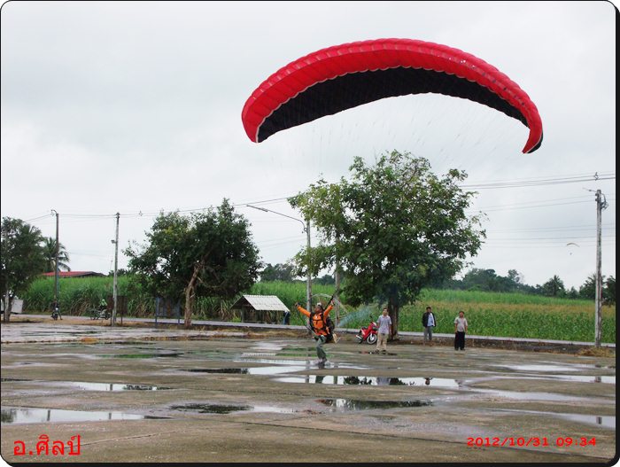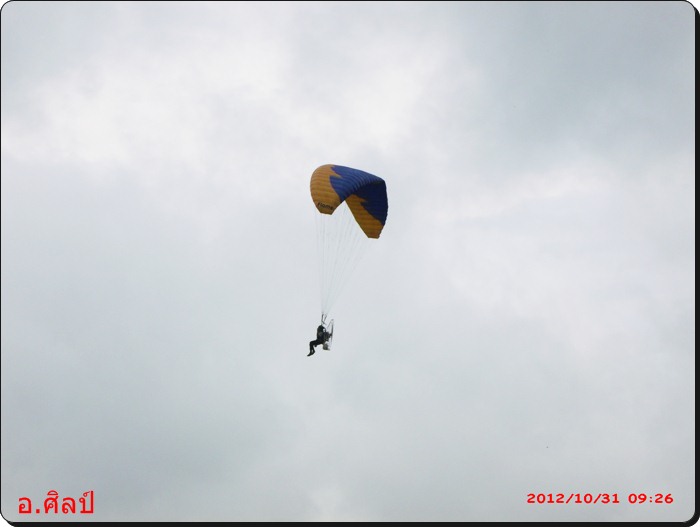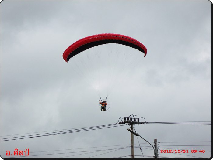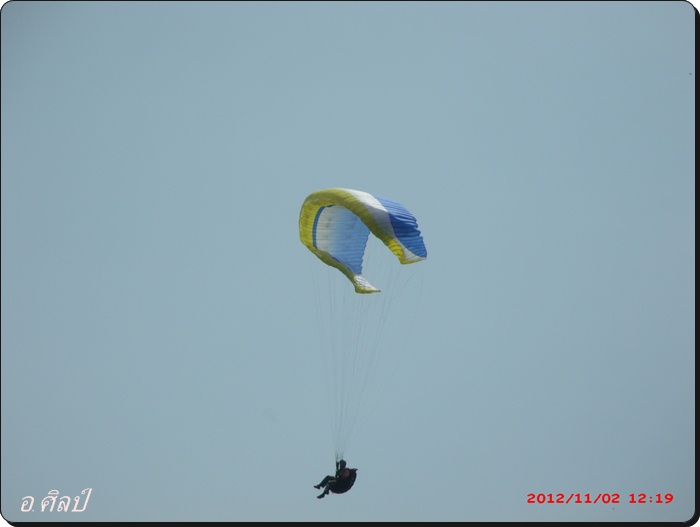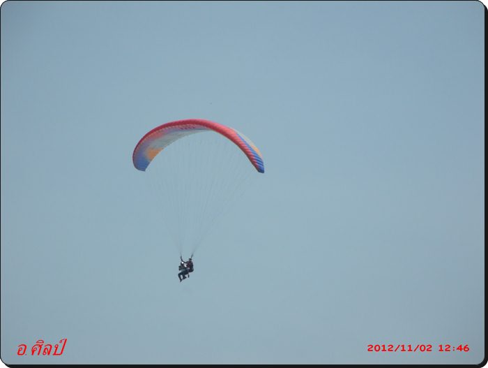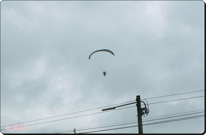 ช่วงบ่ายๆ ลมแรง อากาศร้อน ร่มลงลำบาก ต้องพับปีกกันเกือบทุกร่ม ถึงจะลงได้