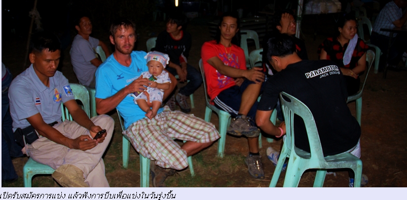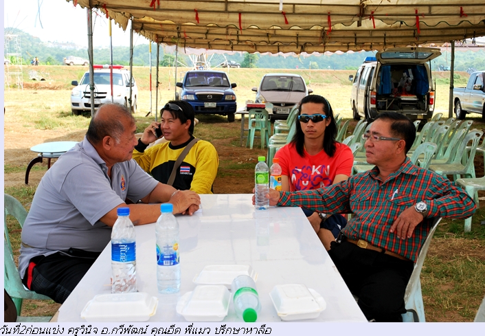 ผมอยู่จนถึงขั้นตอนรับเหรียญ ผมว่าส่วนใหญ่จะเป็นเด็กๆ มีหนุ่มๆ 2-3 คนเท่านั้น ส่วนผู้ใหญ่จะได้ใบประกาศที่เข้าร่วมการแข่งขัน เปรียบเทียบกับร่มร่อนก็เหมือนกัน จำนวนร่มร่อนที่เข้าแข่งขันถ้าจำไม่ผิด 36 ร่ม เป็นเด็กอายุ 12-16 ประมาณ 30 ร่มมีผู้ใหญ่ 4-5 ร่มเท่านั้น อย่างที่บอกว่าพารามอเตอร์นี้ ผมคุยกับร่มกิต ชลบุรี เขาบอกว่าที่เขื่อนนี้เขาอาจจะยุติการแข่งขัน อายเด็กๆ อายุระดับพวกเรานี้ ไว้บินเดินทางเที่ยวสนุกสนานดีกว่า การแข่งขันปล่อยให้เด็กๆดีกว่า....ส่วนน้ำฝน กับเจ้าเสริมก็ทำได้ดีแต่ไม่ทราบว่าได้เหรียญหรือเปล่า เช่นการเตะหลักเช้าวันอาทิตย์ทั้งน้ำฝน เสริม เตะเข้าทุกจุด แต่เวลาสู้เด็กๆไม่ได้ เป็นต้น..........สรุป บิน กิน เที่ยวดีกว่า 5555