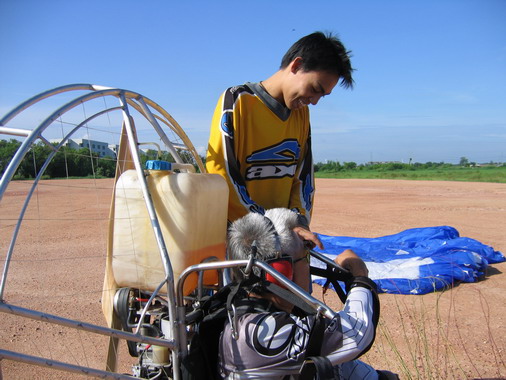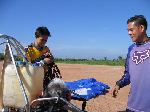 ร้อนถึง น้องพันธ์ ครูทุย ต้องมาช่วยกันปลดสายร่มออกจากเครื่องให้ ครับ ดูรูป