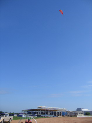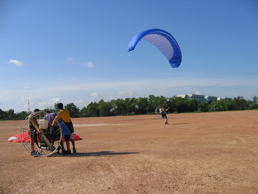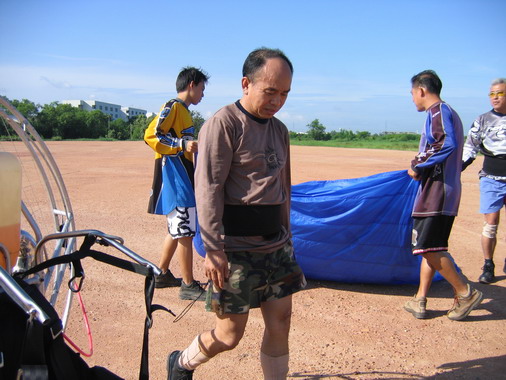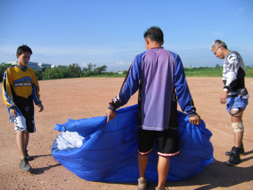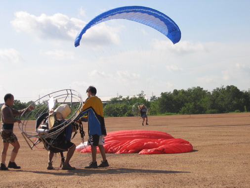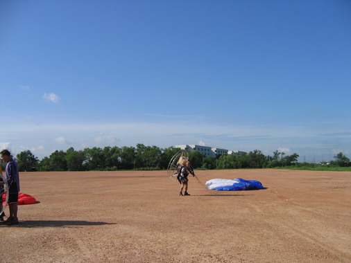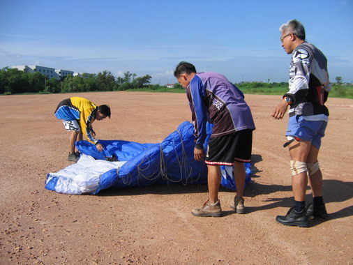 ขณะที่ครูทุย ทำ Spot landing ร่อนวนเป็นวงกลมอยู่นั้น คนอื่นๆภาคพื้นดิน ยังสาละวนอยู่กับการเก็บร่มอยู่เลยครับ