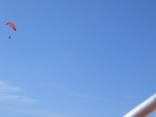 ปกติ คุณต่อจะรีบปลดสายล๊อคเอาตัวออกจากที่นั่งอย่างรวดเร็ว แถมรีบเก็บร่ม วันนี้ ผิดคาด นั่งซึมอยู่ในฮาร์เนส ท่าทางจะหมดแรงจริง ดูกันใกล้ๆ ครับ