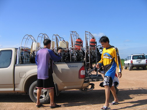 ช่วยกันผูกเครื่องยึดกับรถอย่างแน่นหนาครับ