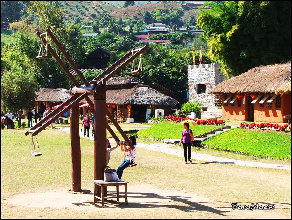 ชิงช้าที่นี่ ใช้แรงคน ค่านั่งคนละ 25 บาท