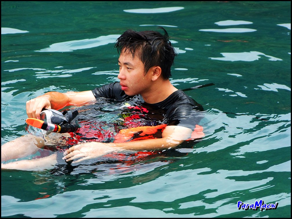น้องณัฐ ลงน้ำทั้งครอบครัว ส่วนผม ก็เก็บกล้องเก็บของไปยืมสน๊อคเกิ้ล ลงตามพี่ๆ โดยเร็ว