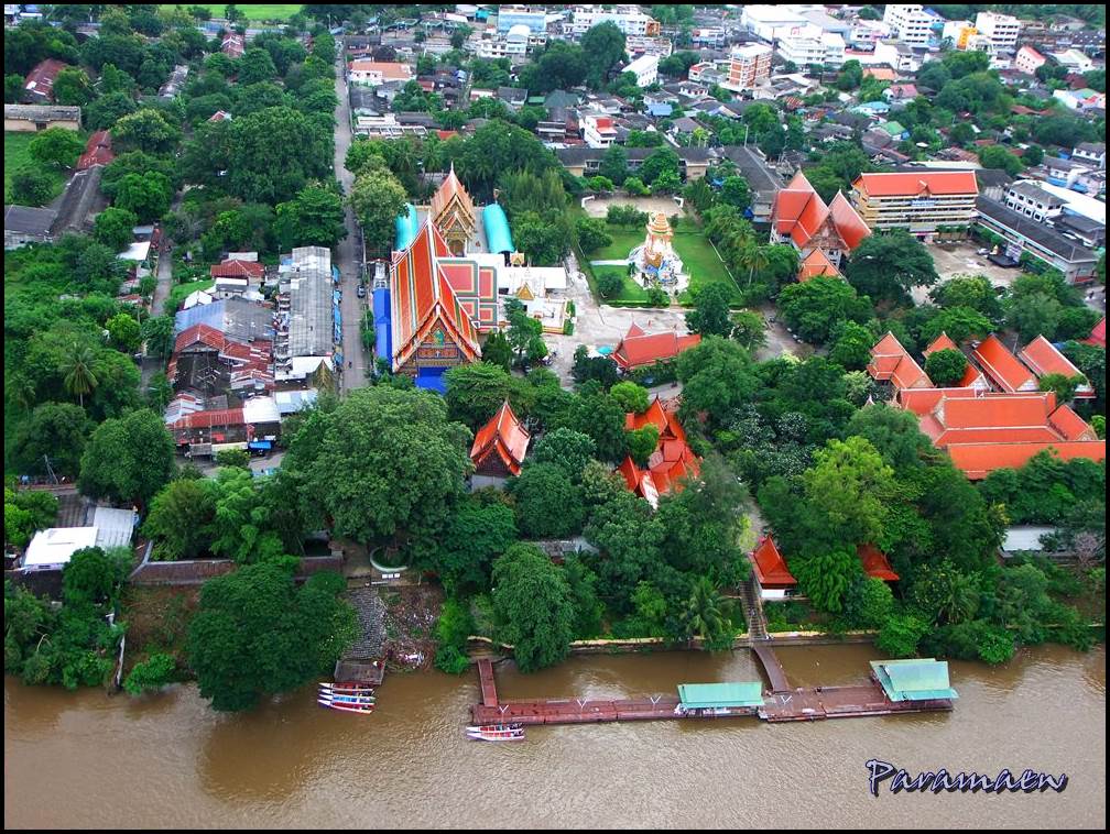 วัดที่เห็นไกลๆ คือวัดเทวสังฆราราม (วัดเหนือ) เป็นวัดที่สมเด็จพระสังฆราชองค์ปัจจุบันบวชเณรตั้งแต่เยาว์วัย
