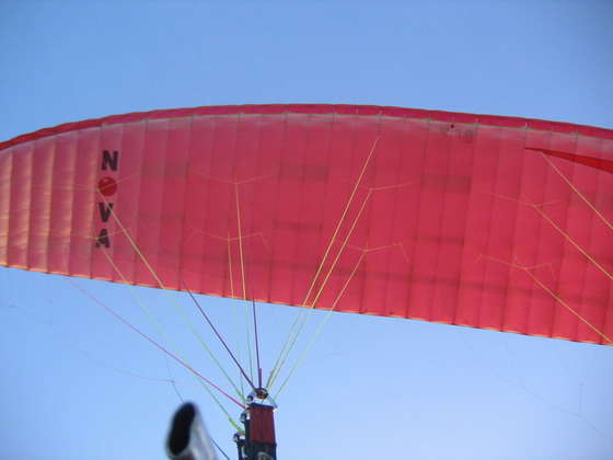 ทางกลับสนาม พวกเราคุ้นทางดีอยู่แล้ว พวกเราจึงบินเผื่อความสูง เพราะต้องข้ามแม่น้ำบางปะกง และเสาไฟฟ้าแรงสูง โดยมีผมเป็นคนนำ เพราะผมใช้ร่ม Nova ซึ่งมีความเร็วมากกว่าคนอื่น คุณต่อบินตามหลังผมมาห่างๆ อยู่สูงกว่าผม น้องต้นอยู่สูงกว่าคุณต่อ แต่ทิ้งกันห่างๆ เดี๋ยวมองไม่เห็นกัน บินชนกันกลางอากาศ ในภาพบินฝ่าเข้าก้อนเมฆ มองไม่เห็นอะไรเลยครับ