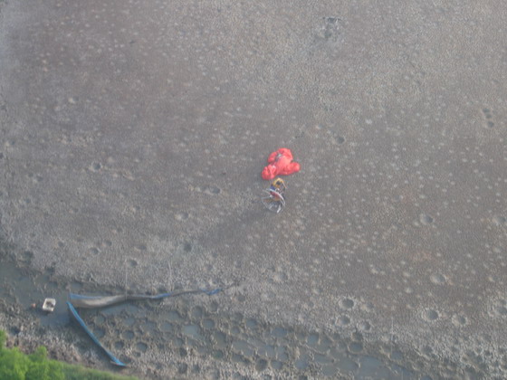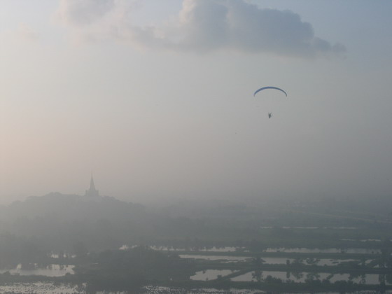 ไม่นาน..เห็นครูทุยร่อนลงในบ่อกุ้งร้าง ใกล้มอเตอร์เวย์ ครูทุยคงมีปัญหากับเครื่องยนต์ ผมมองลงไปเห็นครูทุยกำลังแก้ไขปรับจูนเครื่องยนต์อยู่ ครูทุยคงไม่ต้องให้ใครช่วยเหลือ และคงขึ้นตามพวกเรามาในไม่ช้า