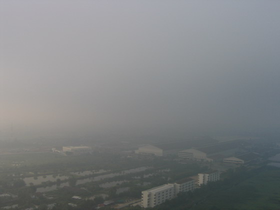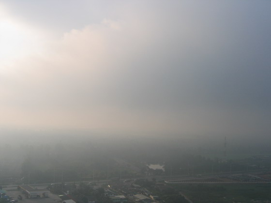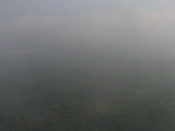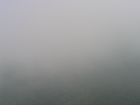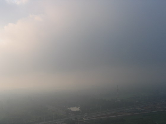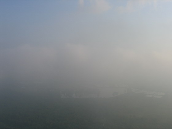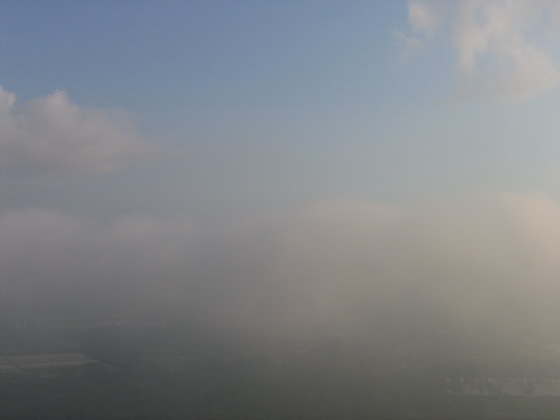 มองเห็นพื้นด้านล่างลางๆ แบบเห็นบ้าง ไม่เห็นบ้าง มีแต่กลุ่มเมฆลอยปะทะตลอดเวลา ไม่สามารถหลบได้
