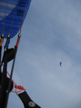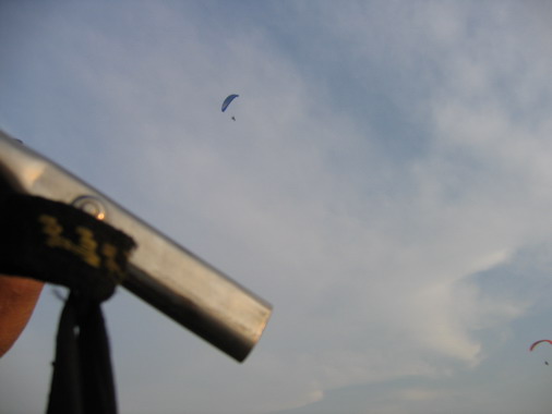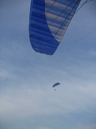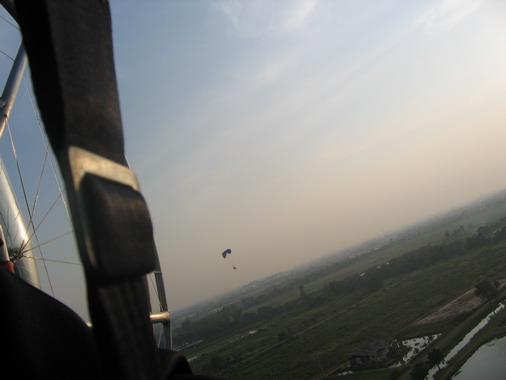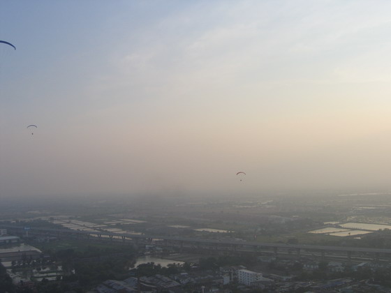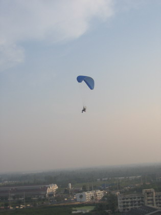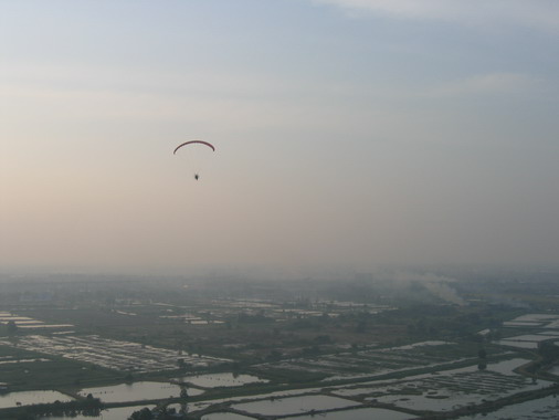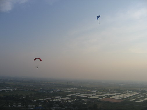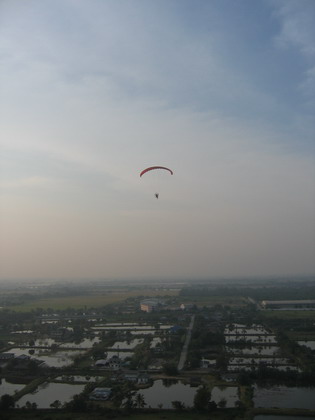 น้องต้น บินอยู่เหนือผมครับ ผมอยากจะขึ้นสูงครับ แต่ทำไม่ได้ง่ายนัก เพราะบินตามลม ใช้ร่มเล็ก น้ำหนักตัวมาก ถ้าจะขึ้นให้สูงต้องใช้กำลังเครื่องมาก เปลืองน้ำมันมาก....บินเกาะกลุ่มตามกันไปแบบนี้ คนที่น้ำมันหมดก่อน คงเป็นผมแน่นอนครับ