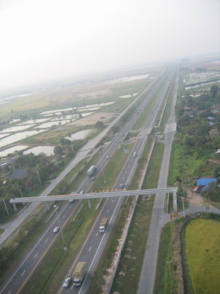 บินผ่านไปมาหลายเที่ยว ไม่เคยเห็น...สะพานลอยคนข้าม...คร่อมถนนมอเตอร์เวย์ คงพึ่งจะสร้างเสร็จ ครับ