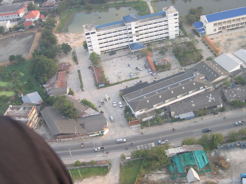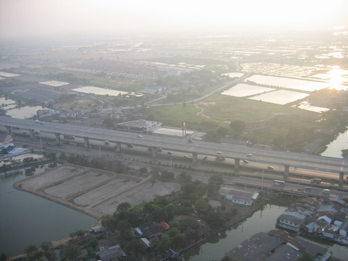 พวกเราไต่ความสูง เกาะกลุ่มกันไป เพื่อความปลอดภัย เผื่อเครื่องดับ เพราะกำลังจะข้ามทางด่วน Tollway ( ทางด่วนบูรพาวิถี ) ครับ