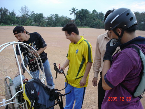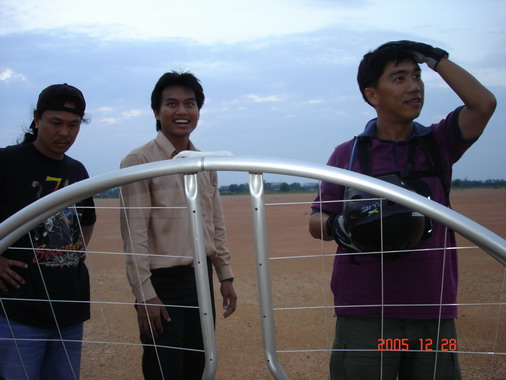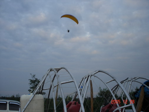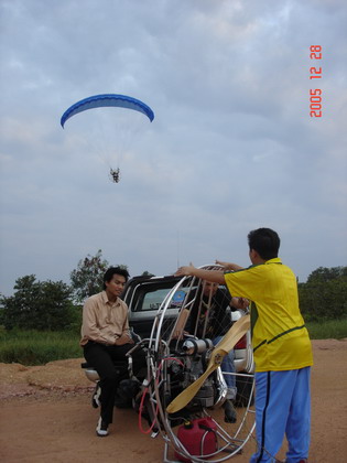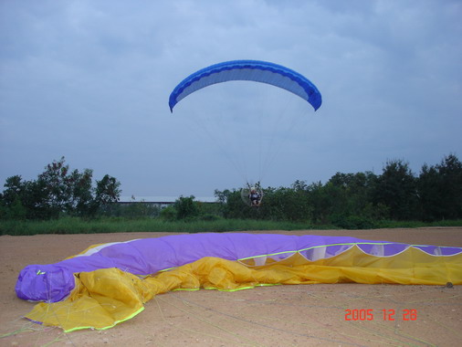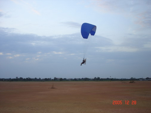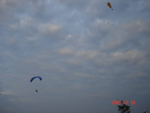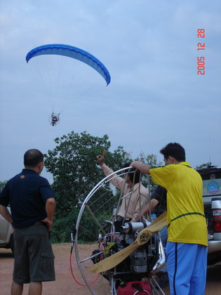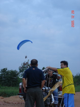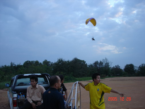 มีใครจะเชื่อว่า เย็นวันที่ 28 ธันวาคม 2548 ก่อนวันปีใหม่ 3 วัน ราวๆ 16.30 น. คุณวิวัฒน์ หรือ โปรวิวัฒน์แห่งร่มร่อนได้บุกมาเยือนถึงถิ่นโสธรร่มบิน บางปะกง จังหวัดฉะเชิงเทรา....ตามด้วยคุณอาร์ท แห่งชมรมร่มบินกรุงเทพ และคุณแอ๊ะแห่งภูเก็ต โดยปกติคุณวิวัฒน์จะมีรูปให้พวกเราได้ดูในแนวร่มร่อน ไม่ว่าจะบินที่ภูเรือจังหวัดเลย , เทรนนิ่งฮิลล์ ระยอง และต่างประเทศที่เพิ่งกลับมา คือ นิวซีแลนด์ ภาพสวยๆโดยมากที่ลงในเวปร่มร่อนเป็นภาพที่คุณวิวัฒน์ถ่ายด้วยตัวเองทั้งสิ้น เรื่องร่มร่อนนั้นคุณวิวัฒน์เก่งอยู่แล้ว แต่มาถึงร่มบิน ยังไม่มีใครเคยเห็นฝีมือคุณวิวัฒน์บิน โดยมากคนที่เล่นร่มร่อน มักจะไต่ขึ้นมาจากร่มบิน พอมาเล่นร่มร่อนแล้ว มันสนุกและท้าทายกว่า โดยมากทิ้งร่มบินไปเลย....ชมรมร่มบินกรุงเทพเป็นชมรมใหญ่ที่มีสมาชิกมากมาย บินอยู่แถวสนามกันตนา ศาลายา มีคุณธนากรเป็นเจ้าสำนักฯ มีพี่แต๋วยอดฝีมือแห่งทีมรถแข่งยามาฮ่าอันเกรียงไกร เป็นผู้ดูแลเครื่องยนต์ นับเป็นเกียรติที่พวกเราจะได้เห็นฝีมือและแนวทางการบินของคุณอาร์ทหนึ่งในชมรมร่มบินกรุงเทพ ว่าจะมีขั้นมีตอนอย่างไร ให้พวกเราได้ศึกษา