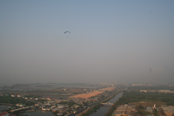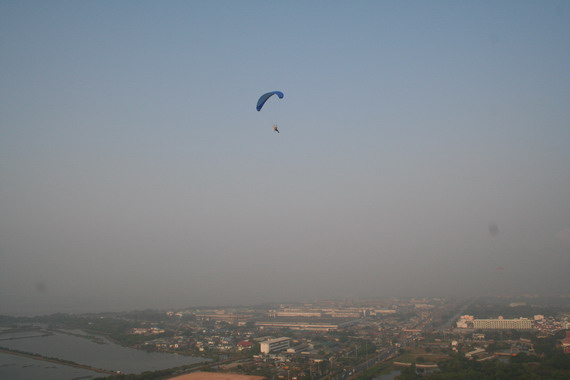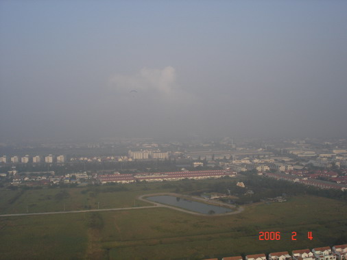 เพราะพี่นะธีโทรไปบอกพี่หงาว่า เห็นพวกเราพึ่งบินผ่านหลังคาบ้าน มาถึงบางปูแล้ว ช่วงนั้นเป็นเวลาเกือบ 8 โมงเช้า ครับ พี่หงาอยู่สนามแปดริ้ว รีบขึ้นร่ม บินตามมาครับ แต่หมอกจัด ไม่เห็นทาง เลยหลงครับ ต้องบินกลับ