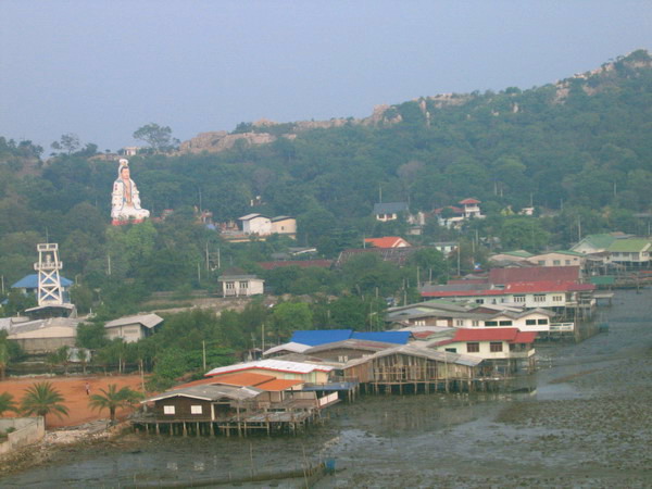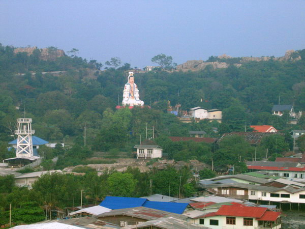 มองไปจะเห็น " เจ้าแม่กวนอิม " นั่งขัดสมาธิอยู่บนดอกบัว หันพระพักตร์ออกทะเล