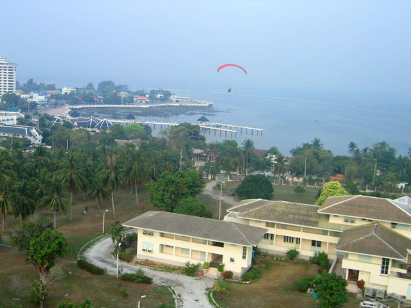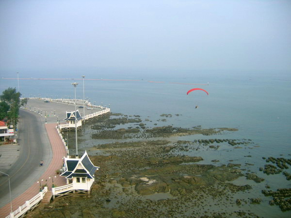 อากาศช่วงที่บินตอนนั้น ไม่ดีเท่าที่ควร เป็นช่วงลม 2 ลมปะทะกัน.....จึงบินตามครูทุยไป ให้ถึงหาดบางแสนโดยเร็ว ไม่ทันได้ถ่ายภาพ เขาสามมุก จากมุมสูง มาให้ชมกัน ครับ