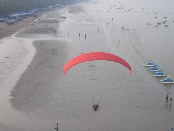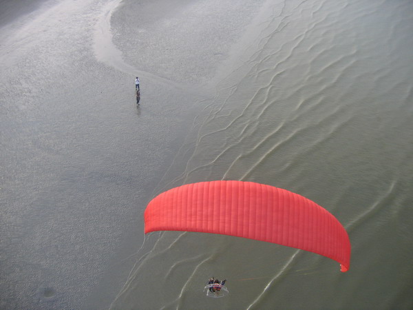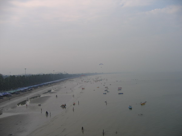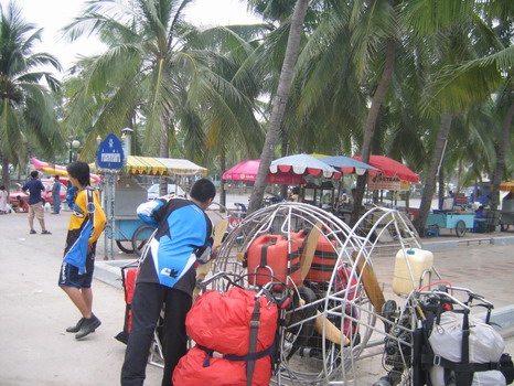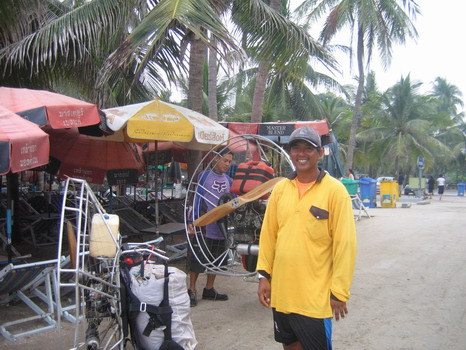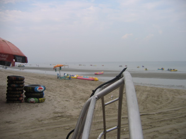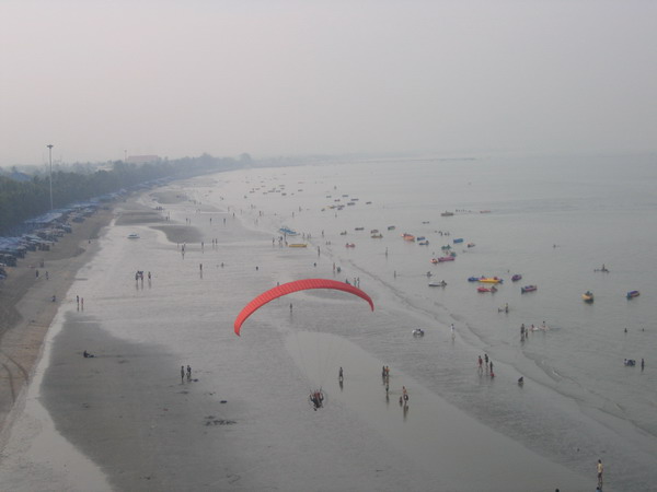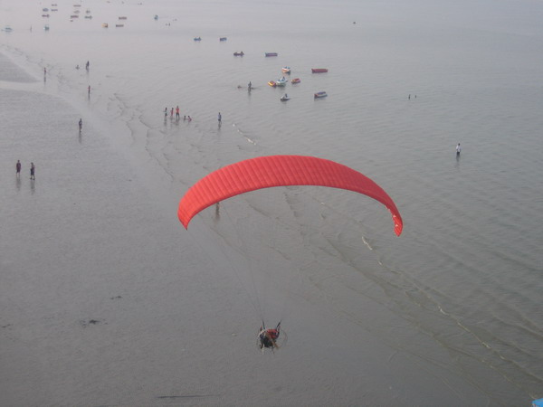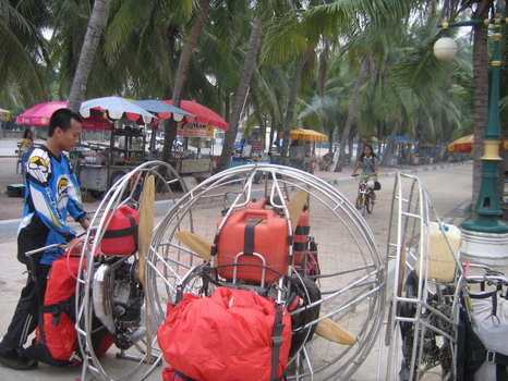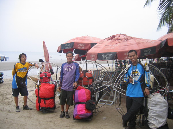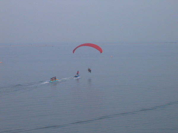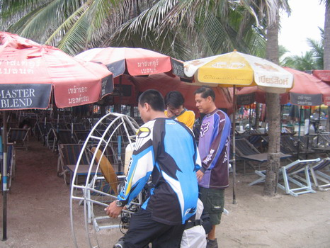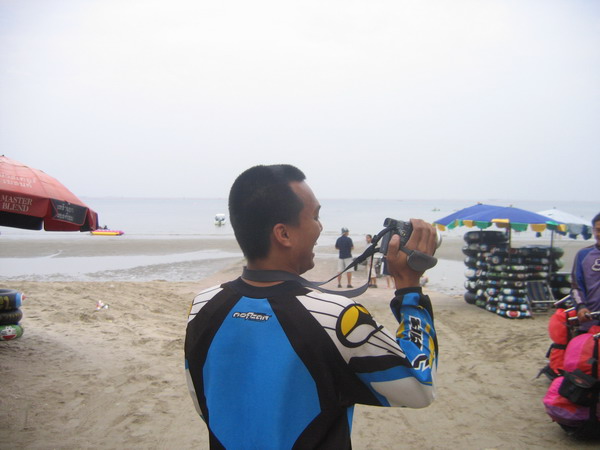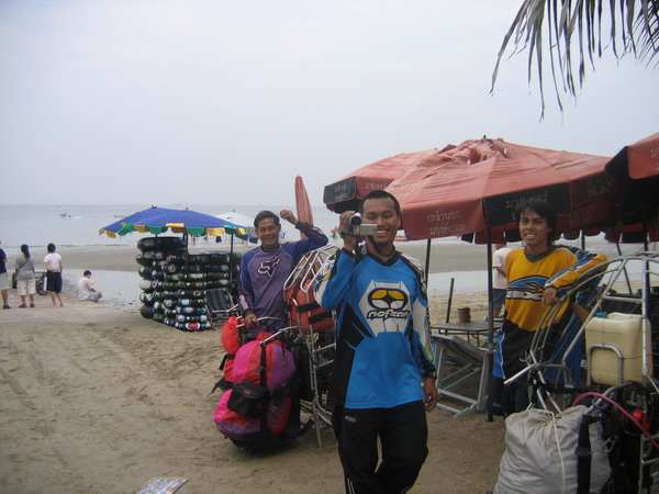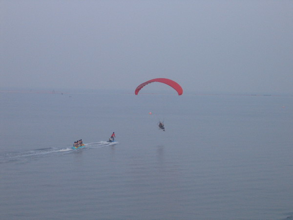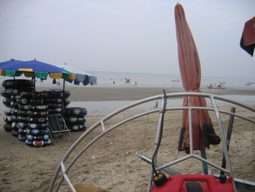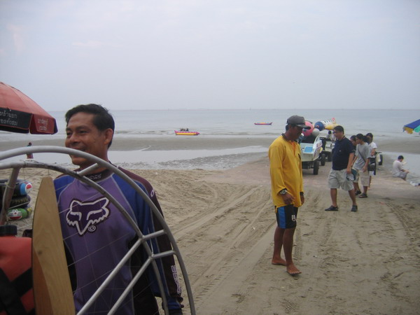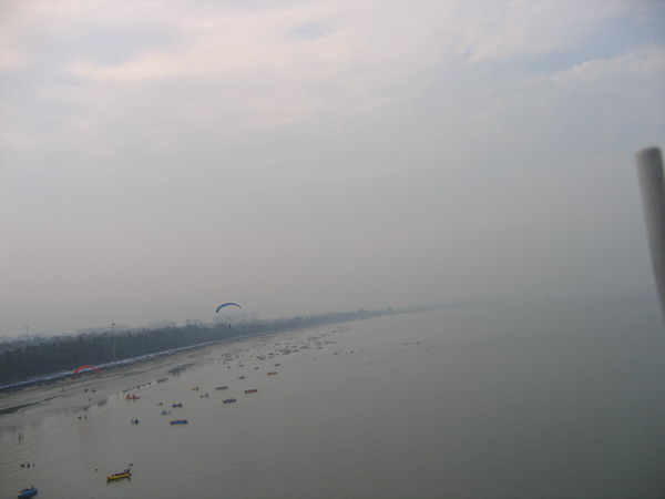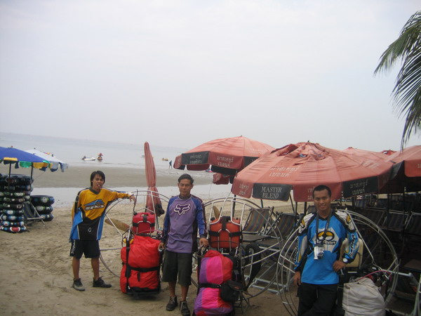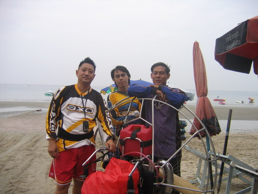 พวกเราลงกันตรงชายหาดบางแสน อย่างนิ่มนวลปลอดภัย...ตอนเรา Landing ลงตรงชายหาด ลม 2 ลม คือ ลมบก ลมทะเล กำลังสวนกัน ทำให้เกิดลมแปรปรวน กดๆ ยกๆ เป็นสัญญาณบอกว่า ถึงเวลาที่เราต้อง Breakfast แล้ว ครับ