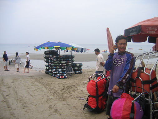 ในภาพ ครูทุย โทรให้ Ground Support มารับที่ชายหาด