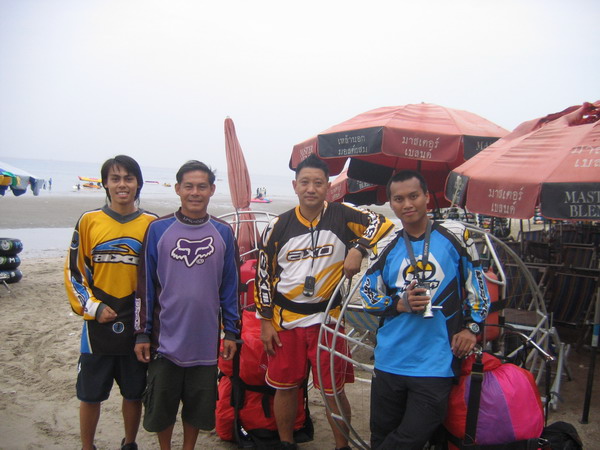 จากซ้าย น้องพันธ์ ครูทุย คนกรุงร่มบิน และน้องต้น ครับ