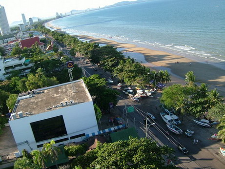 จุดหมายคือข้างหน้า จะเห็นหาดจอมเทียน ตึกขาวๆใหญ่ๆไกลๆ