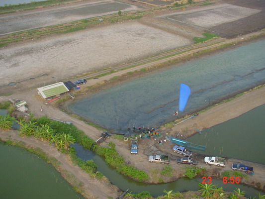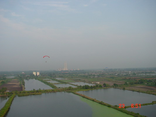 บางปะกงยามเช้า ขณะบินด้วยสามล้อร่มบินที่โชว์ภาพอยู่ด้านบน