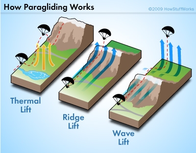 ภาพหลักการทำงานของร่มร่อนโดยอาศัยลมยกจากธรรมชาติ