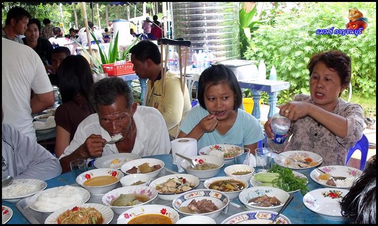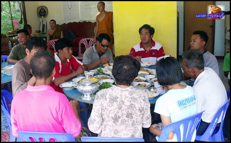 ร่วมกันทานอาหารกลางวันที่ทางวัดภูจวงจัดไว้ให้ นั่งทานกันหน้ากุฏิเจ้าอาวาสกันเลย