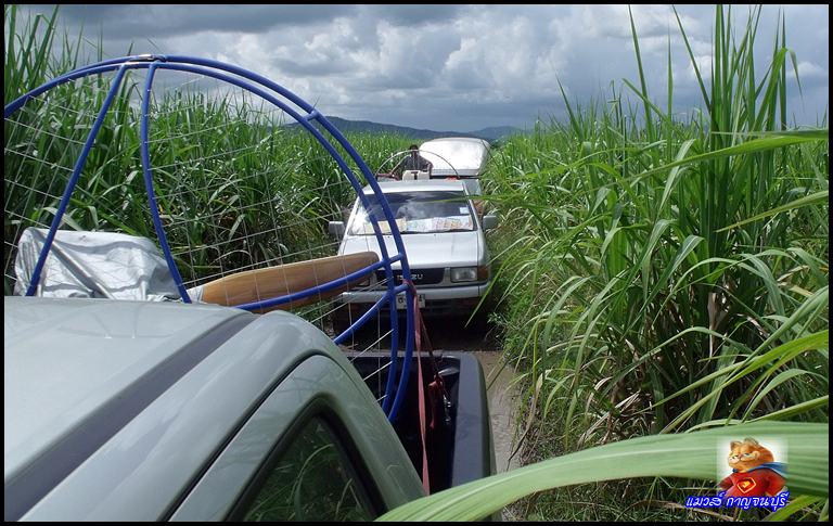 จากทางหลัก ก็เข้าทางลาดยางเข้าหมู่บ้าน ผ่านตัวหมู่บ้านสักพัก ก็เลี้ยวขวาลงไร่อ้อย ช่วงนี้ฝนตกมาก เส้นทางจึงเหมาะกับรถอ๊อฟโรด ..