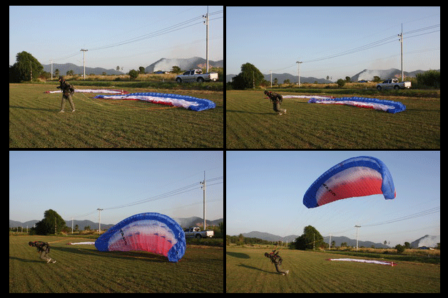 -ฝึกแกว่งหน้าหลัง เพื่อให้ควบคุมร่มได้ในสถานะการณ์ที่ร่มอยู่ด้านหลังมาก หรือคว่ำหน้าลงจะทำยังไงต้องควบคุมร่มยังไง