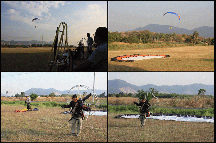 หลังจากลงมาแล้ว ผมก็สอบถาม ลักษณะเฉพาะของร่ม จากจัมโบ้ ว่าเป็นอย่างไร พอทราบ ก็เกี่ยวร่มขึ้นบินทันที