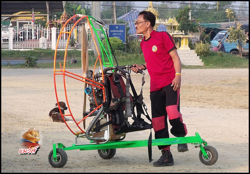 หลังจากอัดรายการเสร็จ ก็พาตากล้องไปยังสนามที่ใกล้ที่สุด เพราะเวลาล่วงเลยมามาก ก็เลยใช้พื้นที่ข้างโรงพักลาดหญ้า เป็นจุดเทคอ๊อฟ บินไปถ่ายทำต่อ