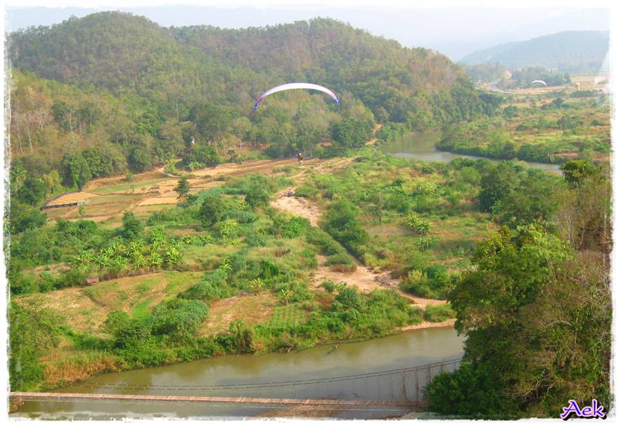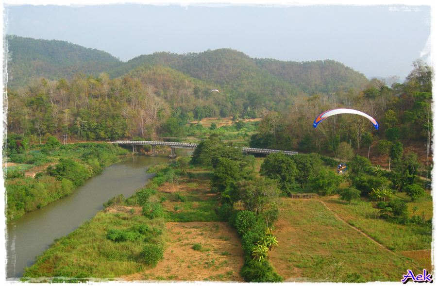 GT พี่ชู กำลังบินข้ามสะพานแขวน ลำน้ำปาย ไปคราวนี้ยังไม่ได้ไปเดินข้ามเลย รอไปคราวหน้าจะพาไปข้ามใครจะไปด้วยยกมือขึ้น แต่ต้องซ้อมเทคขึ้นเก่งๆนะ