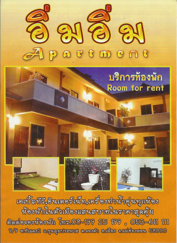 ที่ลืมไม่ได้เลย...สำหรับ..ท่านใด..จะไปเที่ยวแม่ฮ่องสอน...ติดต่อสำรองที่พักได้โดยตรง..กับคุณเอกได้เลย...(เจ้าของที่พัก..เป็นญาติคนเอก..)
