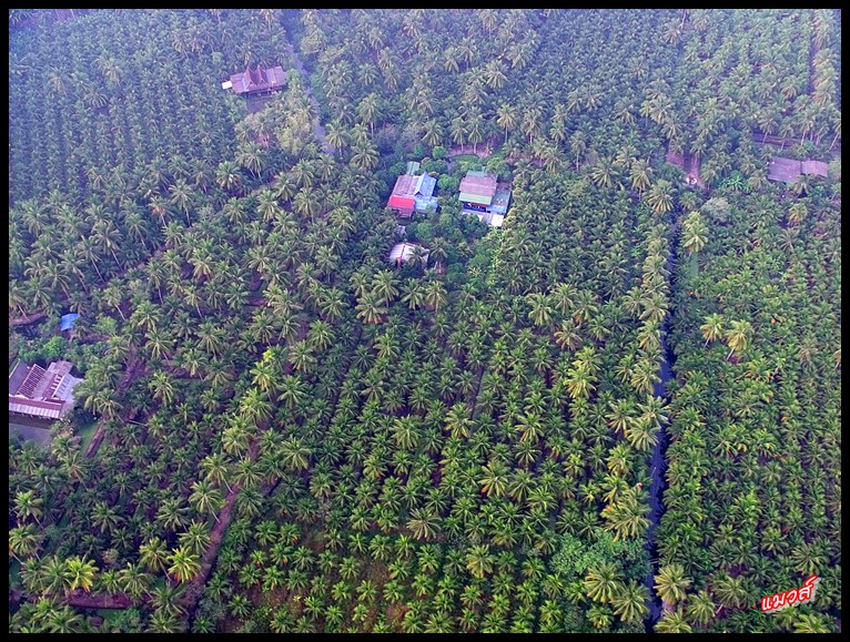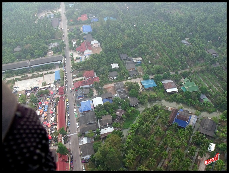 มีแต่ดงมะพร้าวทั้งนั้นเลย ทำไมเป็นงี้ว๊ะ .. นึกในใจ ลูกพ่ออย่าเกเร อย่าดับ อย่าออกอาการ สิ่งหนึ่งสิ่งใดอย่าหลุดโดนใบพัดนะ โอ๊ยนึกสารพัด ทริปนี้ เจอที่โล่งจะถอดใจลงก่อนดีมั๊ย.. ตามจีพีเอส ต้องบิน 85 กม.กว่า ถึงจะถึงที่หมาย แล้วต้องบวกบินอ้อมทะเลอีก