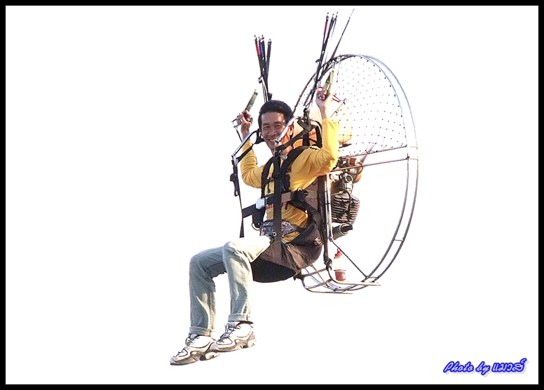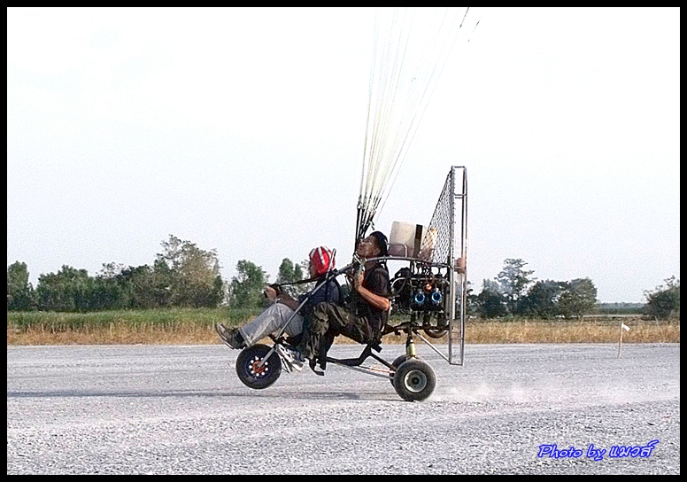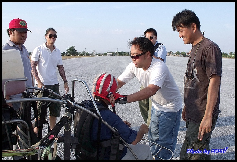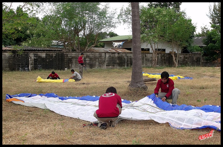 ลงตรงนี้ครับ ตรงพิกัดเป๊ะ ลงอย่างกะฮอลิคอปเตอร์เลย ลงช้า นิ่มมาก พอเท้าเหยียบพื้นหากไม่มีคนช่วยยึด ก็ปลิวตามลมเลยล่ะ...