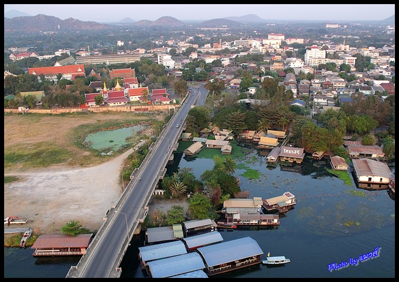 กำลังยกตัวข้ามแม่น้ำแม่กลอง รู้สึกจะเป็นช่วงอัมพวา เห็นมีตลาดน้ำด้วย แต่หมอกเยอะจัง