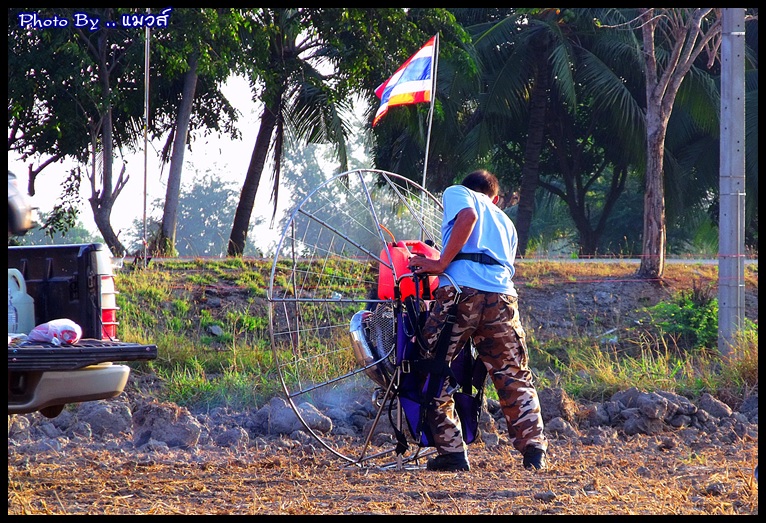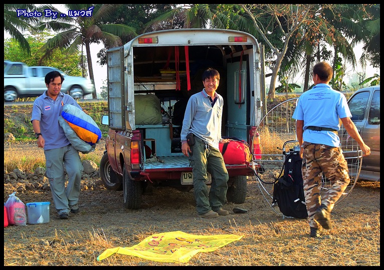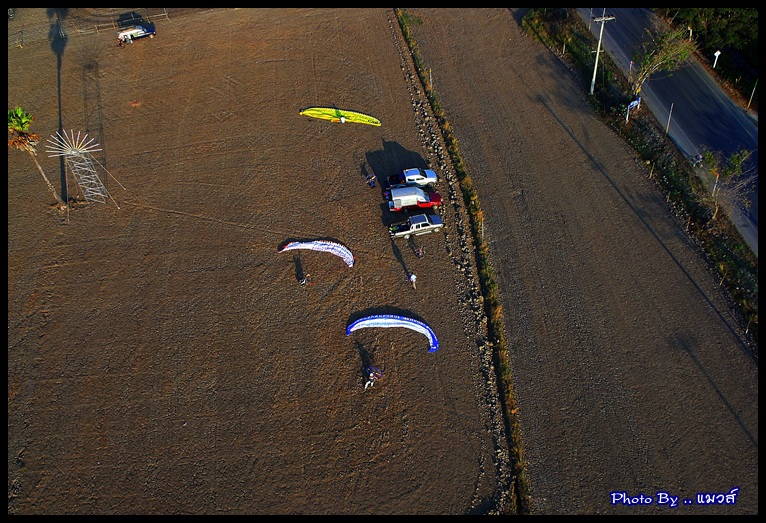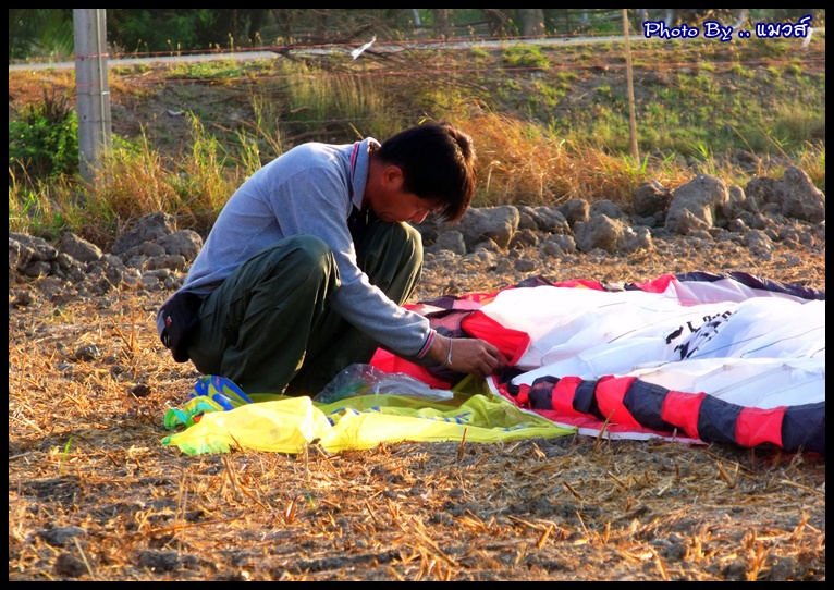 จัดแจงประกอบเครื่องเตรียมร่ม และเช่นเคย พี่อมร แห่งลุ่มน้ำสามชุก ตลาดร้อยปี ได้เตรียมของเล่นให้พวกเราขึ้นไปสร้างสีสรรค์บนท้องฟ้า แต่ก็ยังนึกถึงภาพสิงห์โตขาดสองท่อน .. ใบแตก .. อยู่เลย