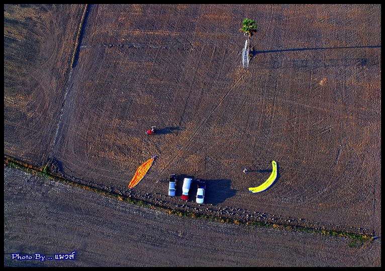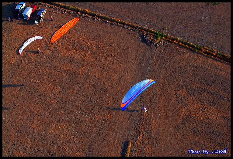 ผมบินขึ้นเป็นคนที่สองต่อจากตาชู ทำความสูงไปเรื่อยๆ เพื่อเก็บภาพด้านล่าง ... งานนี้มีการแข่งรถโมโตครอสด้วย เห็นมีรถอยู่คันหนึ่ง มาซ้อมที่สนามแต่เช้าเลย .